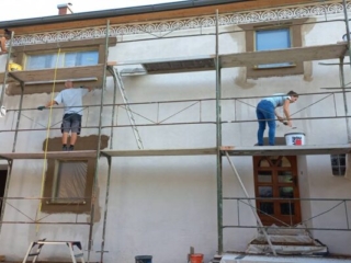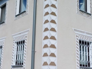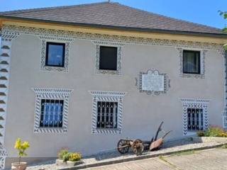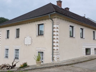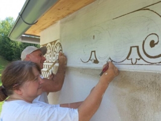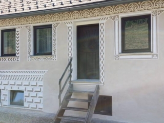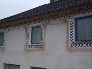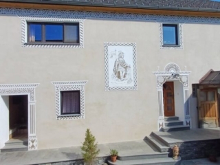 Bauernhof renoviert und mit einer Sgraffito-Fassade in seinem optischen Erscheinungsbild aufgewertet.