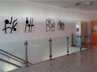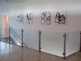 Wesentlicher Bestandteil meines Konzeptes war, die Schule Außen sowie Innen neutral weiß zu halten und wenige farbige Akzente zu setzten. Auch ist es mir gelungen die Gemeinde zu überzeugen das ein modernes Nirosta -Glasgeländer besser das Gebäude passt als der Brombeer- farbige Alu-Verbau.